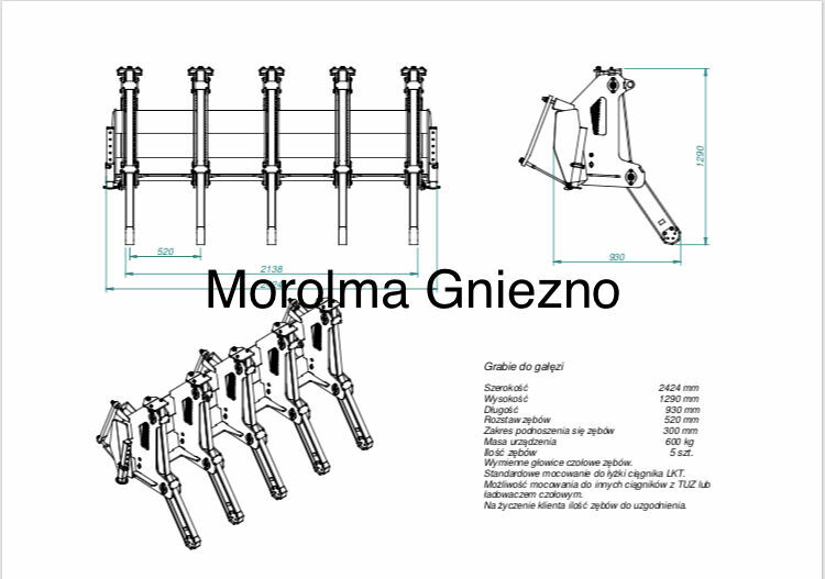 Brona leśna FK MACHINERY KOŁASZEWSKI grabie do drzewa zgrabi