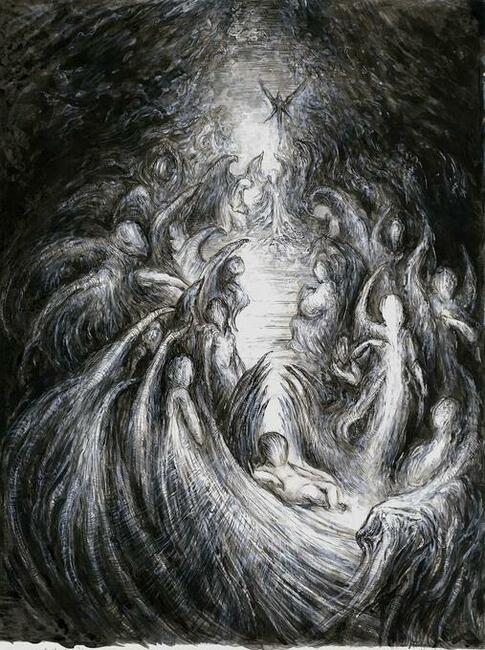 Ołtarz rysunek piórkiem na papierze wykonany przez Andrzeja Masianisa absolwenta Wydziału Sztuk Pięknych UMK w ...