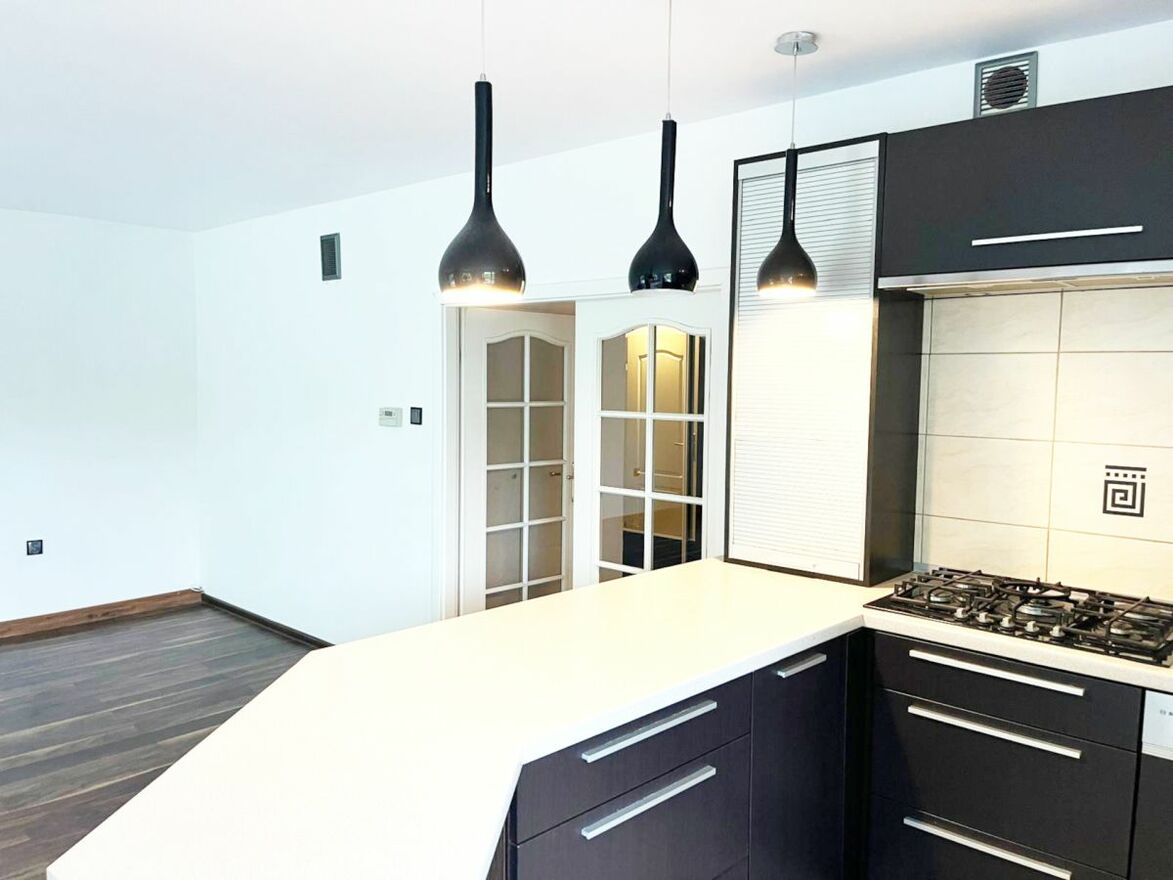 • Przestronny salon z kuchnią - 43,5 m², idealny do wspólnych posiłków i rodzinnych spotkań