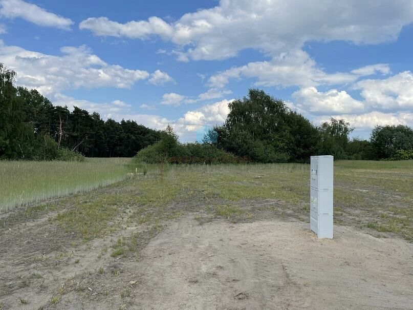 Do działki doprowadzony jest prąd ze skrzynką. Nieruchomość jest w kształcie prostokąta, z terenem płaskim.