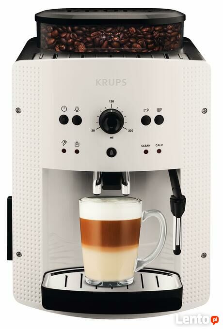 - Krups EA8105 automatyczny ekspres do kawy, automatyczne czyszczenie, funkcja 2 filiżanek, system mleka z dyszą CappucinoPlus, 15 bar, ekspres do kawy espresso, ekspres do kawy w kolorze białym biały Pojedynczy