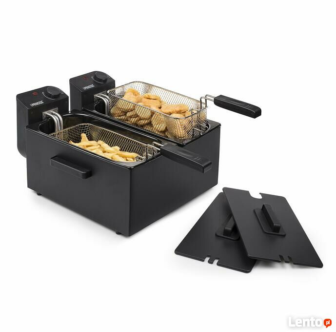 - Princess Podwójna frytkownica ze stali nierdzewnej w kolorze czarnym, 2 x 3 litry (2 x 1800 W) z funkcją zimnej strefy, 183028