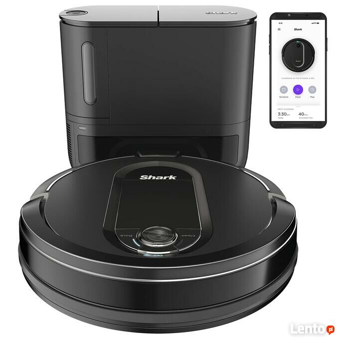 - Shark IQ Self-Empty RV1000SEU, robot odkurzający, automatyczna bezworkowa stacja ssąca, technologia Anti-Hair-Wrap, dywany i twarde podłogi, aplikacja Wi-Fi, sierść zwierząt, czarny i szary IQ Self-Empty robot ssący