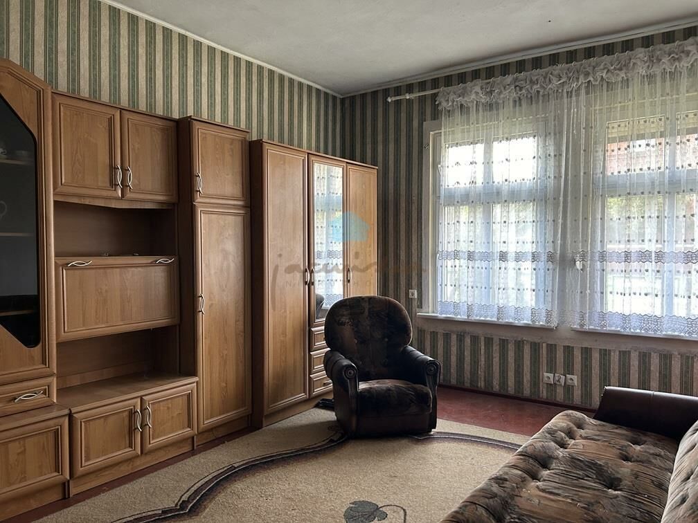 Mieszkanie składa się z dwóch przestronnych pokoi, z czego pokój dzienny jest przechodni i sypialni z dodatkowym wyjściem na posesję, przechodniej kuchni z meblami kuchennymi ze sprzętem AGD (kuchenka z piekarnikiem elektrycznym, lodówko-zamrażarka) i oknem, łazienki z wc i 2 przedpokoi.