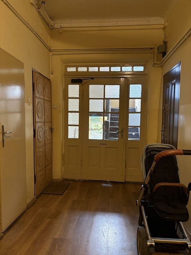 Po przeciwnej stronie klatki, znajduje się przestronny pokój, z oknem wychodzącym na dziedziniec od strony północnej kamienicy.