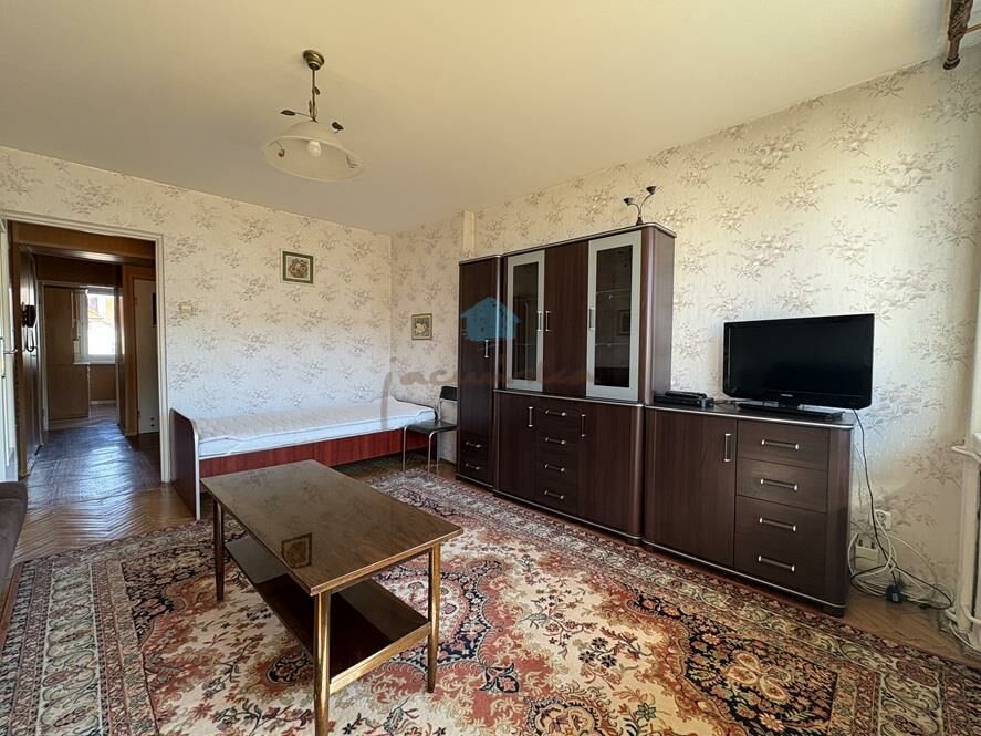 - przestronnego salonu o powierzchni 23,3 m2, z podłogą wyłożoną dębowym parkietem, ścianami wyłożonymi tapetą i wyjściem na balkon, z którego rozciąga się piękny widok na panoramę miasta;