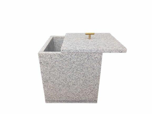 Solidny, granitowy pojemnik nagrobny, który może służyć jako urnowy grobowiec lub element monumentu nagrobnego na ...
