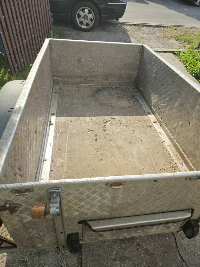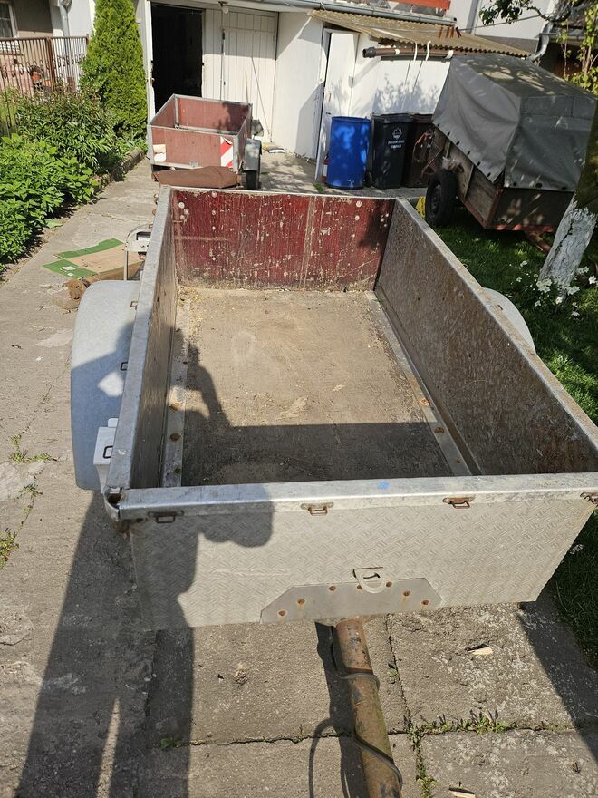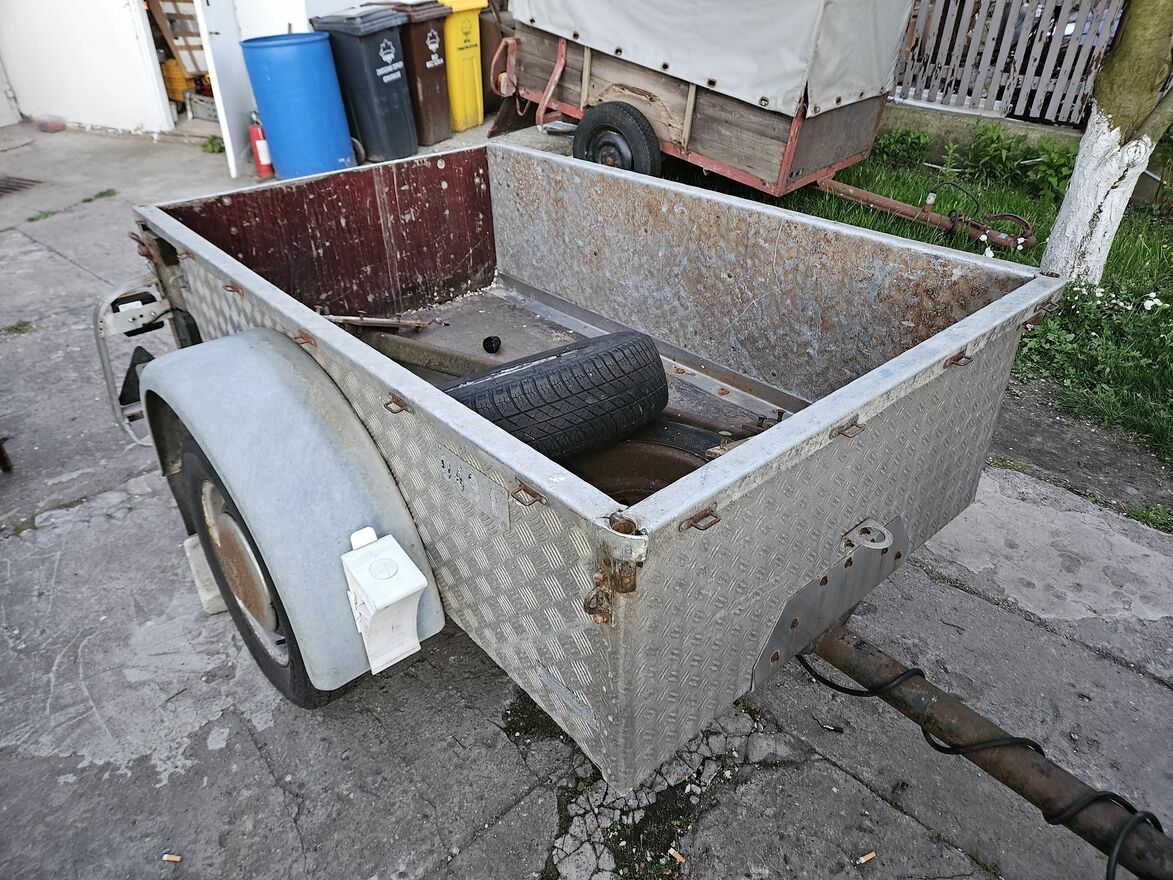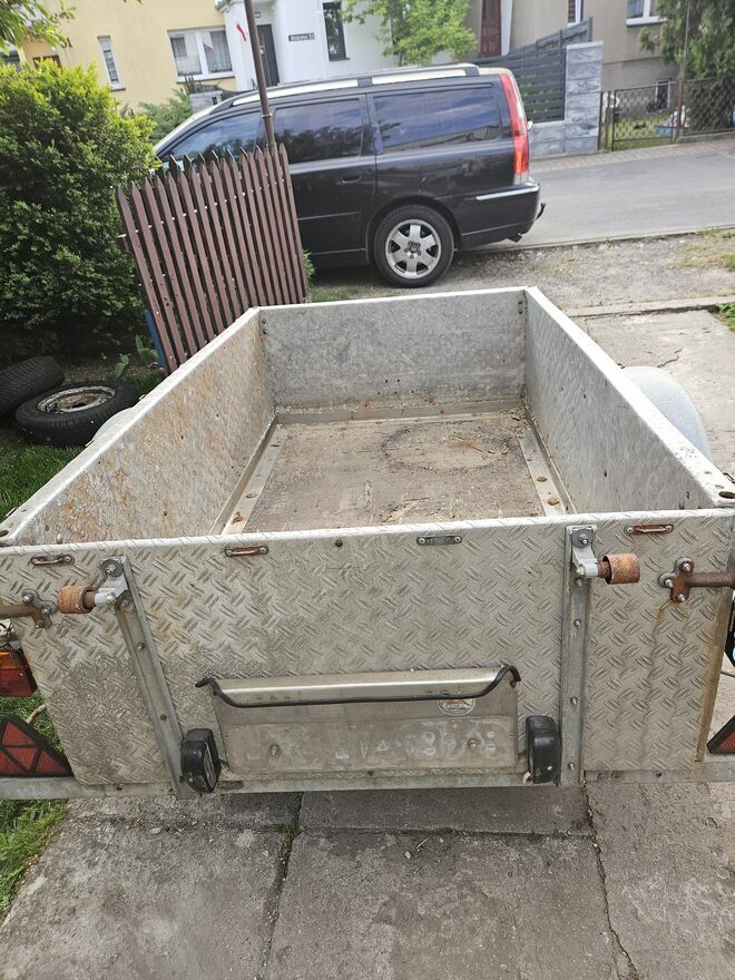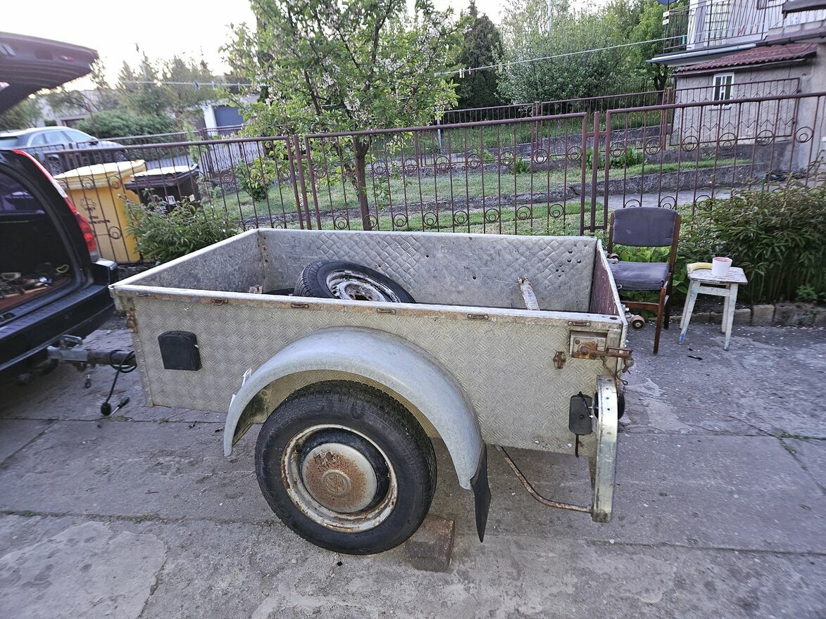 cała aluminiowa . jedyna w swoim rodzaju z roku 1938 rok. tak jest w dowodzie rej. napisane .przedwojenna przyczepa .